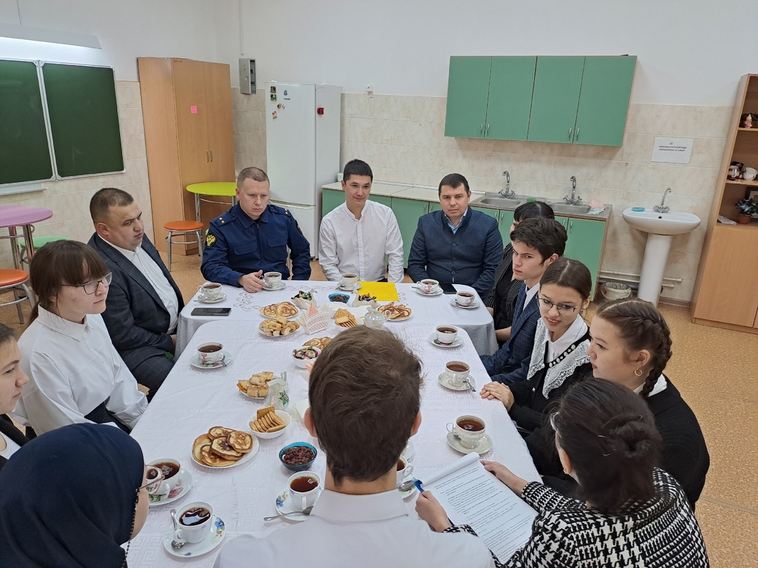 В рамках Всероссийского дня правовой помощи детям для учащихся 9-10 классов прошёл деловой завтрак на тему "Права ребёнка". На встрече выступили заместитель прокурора Яфизов Л.М, члены Общественного совета Якупов М.Р, Гарипов А.И. Они рассказали школьникам о правах детей, закреплённых в Конвенции о правах ребёнка, и подчеркнули, как важно знать свои права и уметь их защищать.Особое внимание было уделено теме выбора профессии. Гости поделились своим опытом работы в правоохранительных органах и подчеркнули значимость профессий, связанных с защитой прав и справедливостью. Школьники задавали вопросы о карьерном пути и качествах, которые необходимы для успеха. Такая встреча дала ребятам не только знания о своих правах, но и мотивацию задуматься о будущем и сделать осознанный выбор профессии.
