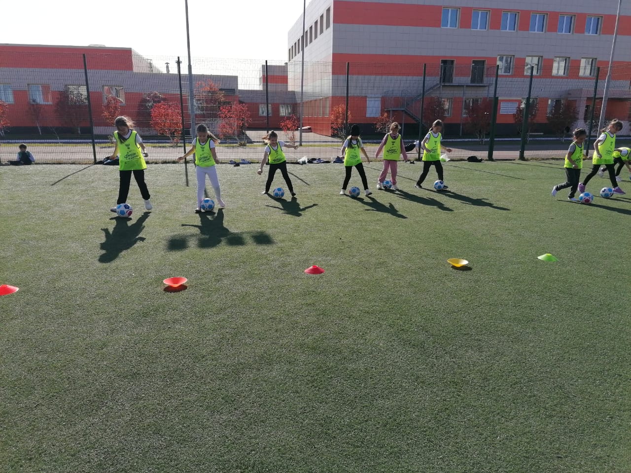 В рамках проекта "Футбол в школе" учитель физкультуры Алтынбаева О.Н провела тренировки для девочек 3Б класса "Мы в игре"