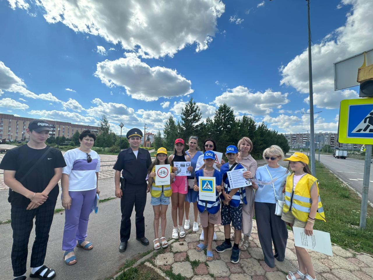 Дети пришкольного лагеря МБОУ "СОШ № 1 г.Азнакаево"совместно с инспектором ИАЗ отделения Госавтоинспекции отдела МВД России по Азнакаевскому району лейтенантом полиции Джавадовым Б.Р. и родителями организовали патруль по профилактике детского дорожно-транспортного травматизма. Мероприятие прошло с целью пропаганды безопасного участия в дорожном движении и информирования детей-пешеходов, пассажиров и лиц, управляющих транспортными средствами, о рисках при передвижении на вело, мототранспорте, средствах индивидуальной мобильности, а также об ответственности родителей за нарушение правил перевозки детей.