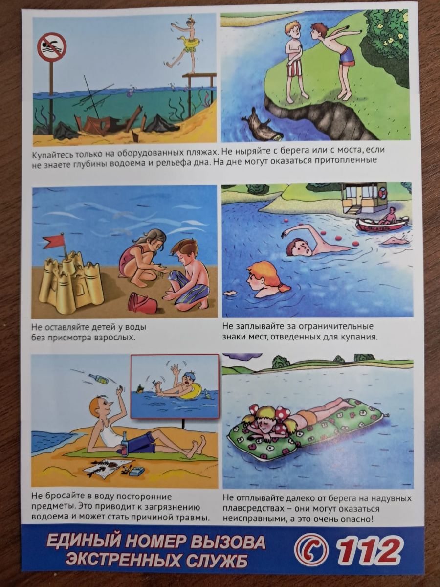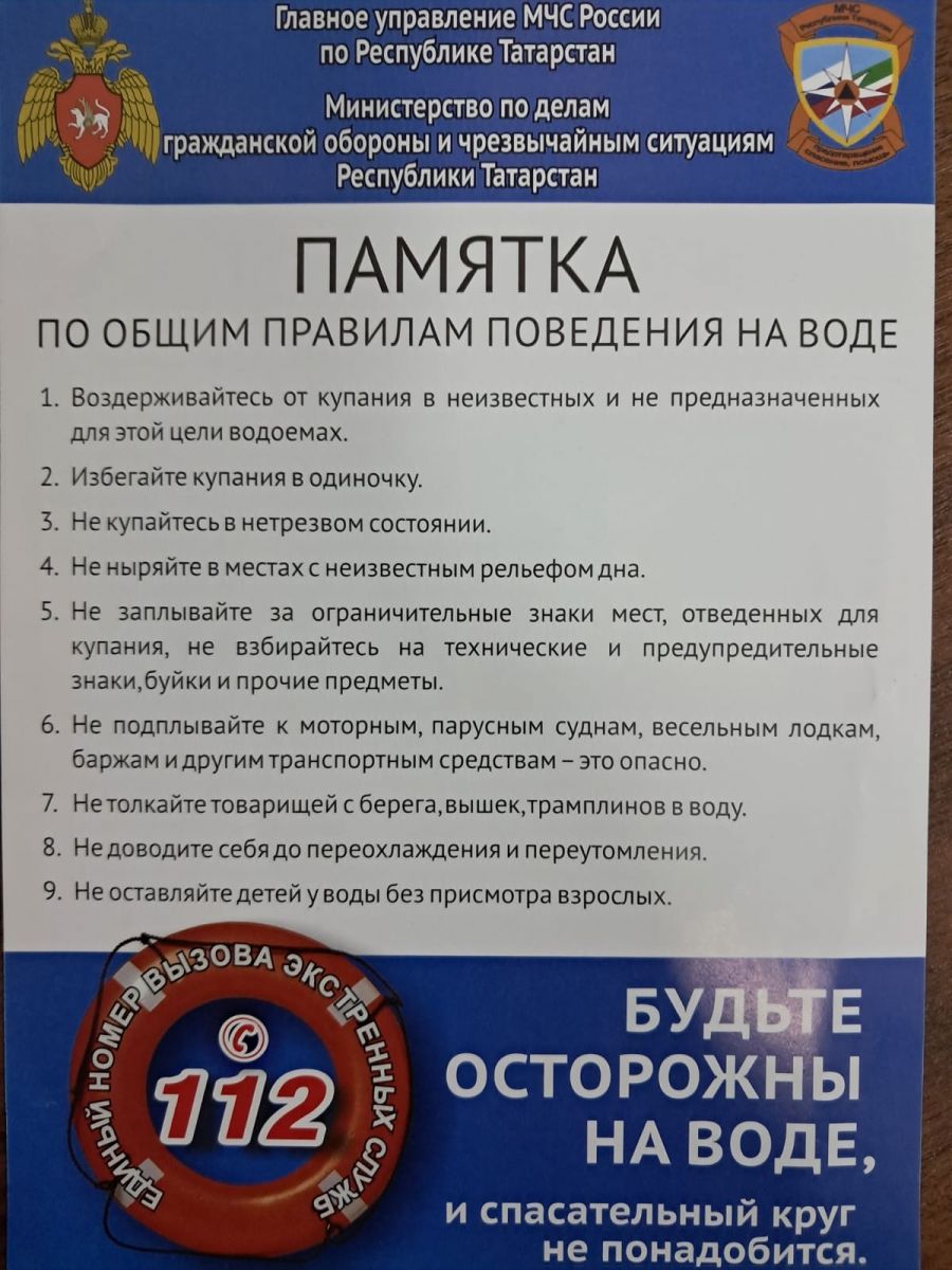 Дети должны отдыхать на водоёме только в присутствии взрослых. купаться можно только на оборудованных пляжах, где проверено дно и дежурят спасатели.нельзя заплывать за буйки. нельзя играть в воде в травмоопасные игры. нельзя звать на помощь ради «прикола».нельзя нырять в холодную воду во время жары, это может привести к судорогам. Обязательно проговорите эти правила с детьми! Безопасность начинается с нас!Ял итү бәлагә әйләнмәсен өчен, куркынычсызлык кагыйдәләрен бер минут та онытырга ярамый: балалар сулыкларда олылар алдында гына ял итәргә тиеш, су коенырга бары тик җиһазландырылган пляжларда гына мөмкин, анда коткаручылар дежур тора. буклар артыннан йөзеп булмый, суда травматик уеннар уйнарга ярамый, "прикол" өчен ярдәмгә чакырырга ярамый, эссе вакытта салкын суга чумып булмый, бу тоткарлануга китерергә мөмкин. Бу кагыйдәләрне балалар белән сөйләшегез! Куркынычсызлык безнең белән башлана!