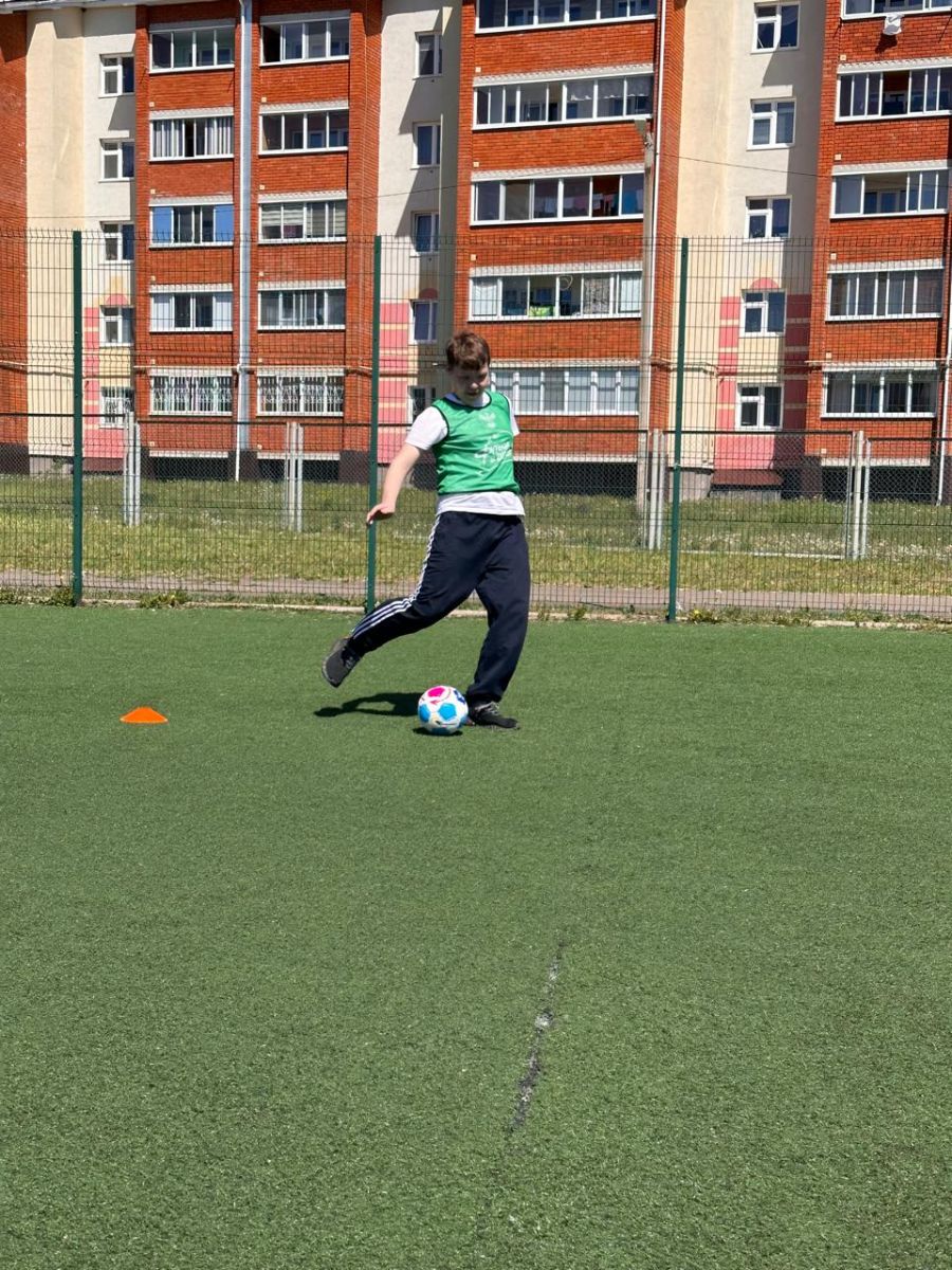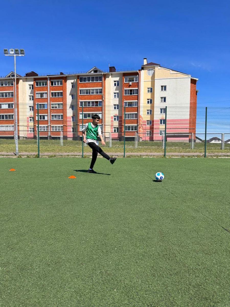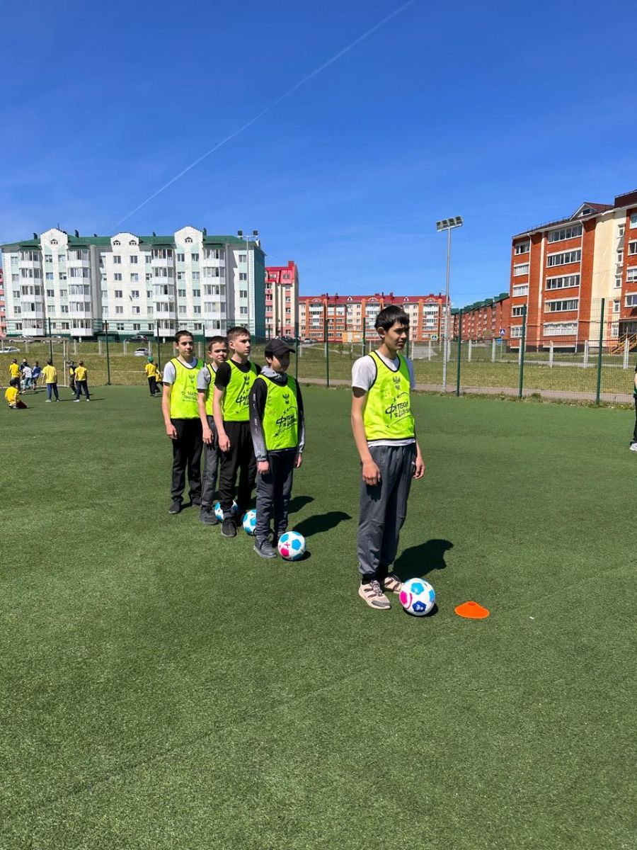 Бүген "Мәктәптә футбол" проекты кысаларында физкультура укытучысы Алтынбаева О.Н. футбол кырында 5-9 нчы сыйныф укучылары өчен "Футбол каруселе" үткәрде.