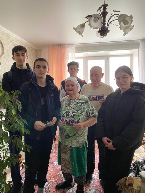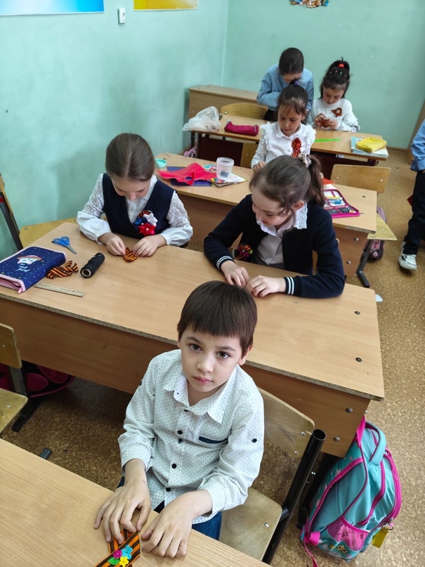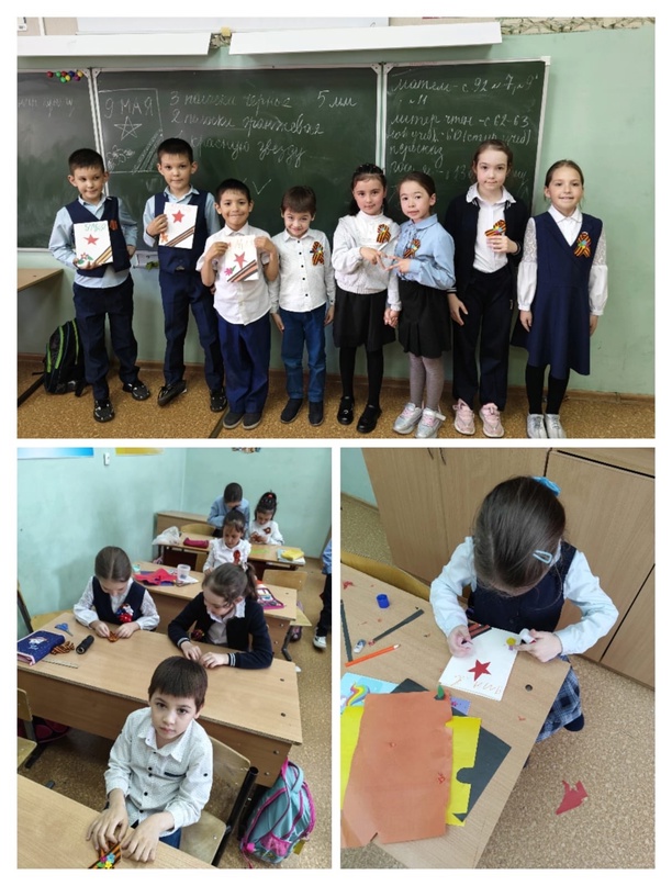 Бүген озайтылган көн төркемендә 9 майга багышлап Георгий тасма-брошь һәм открытка ясадылар.
