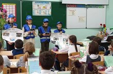 На этой неделе юные инспекторы напоминают о соблюдении правил ПДД, они выступают перед учащимися начальных классов, раздают буклеты.