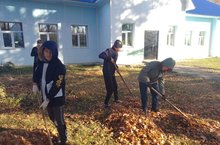Сегодня учащиеся 7а класса очень плодотворно поработали на субботнике, территория школы была очищена от листьев, высохших растений.