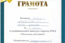 Отряд ЮИД "Зебра"принял участие в муниципальном конкурсе отрядов ЮИД «Молодцы, юидовцы!» и занял 1 место.