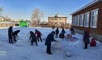 Мәктәп яны балалар тавышы, чыр- чуга күмелде: укучылар кар сыннары ясарга чыктылар.