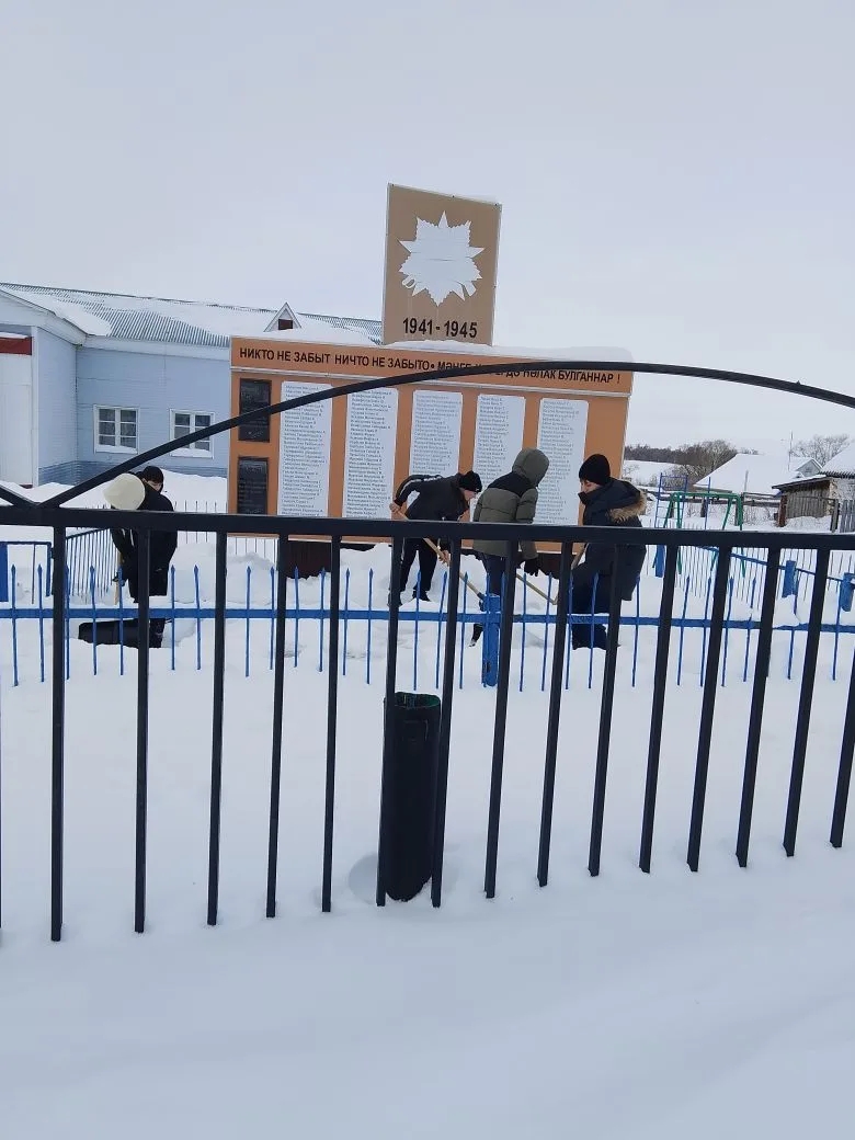 Очистка памятника от снега со старшеклассниками нашей школы.
