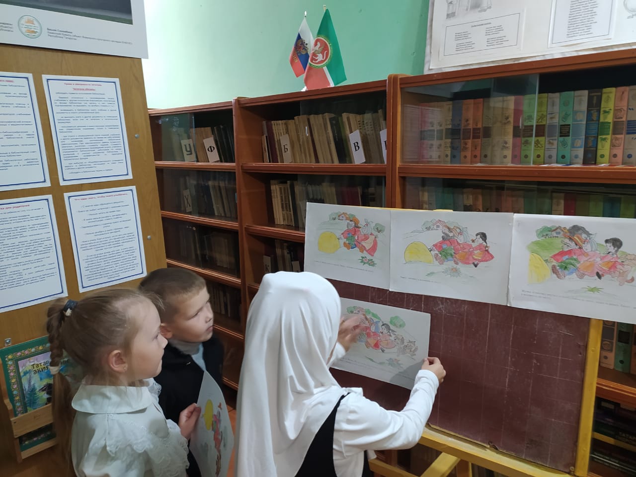 Библиотекалар атналыгы кысаларында, 23 нче октябрь көнне 2-4 сыйныф укучылары белән "Әкияттә кунакта" исемле викторина үтте. Дежур укучылар тарафыннан дәреслекләренең торышы тикшерелде.