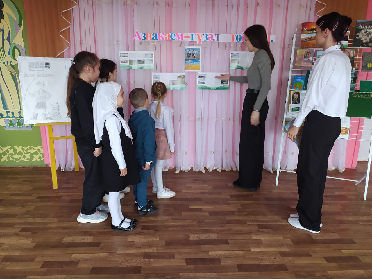 Китапханә атналыгы кысаларында 24 нче октябрь көнне югары сыйныф укучылары "Азнакаем-гүзәл төбәгем." исемле выставка ясадылар һәм башлангыч сыйныф укучыларына Азнакай төбәге турында сөйләделәр.