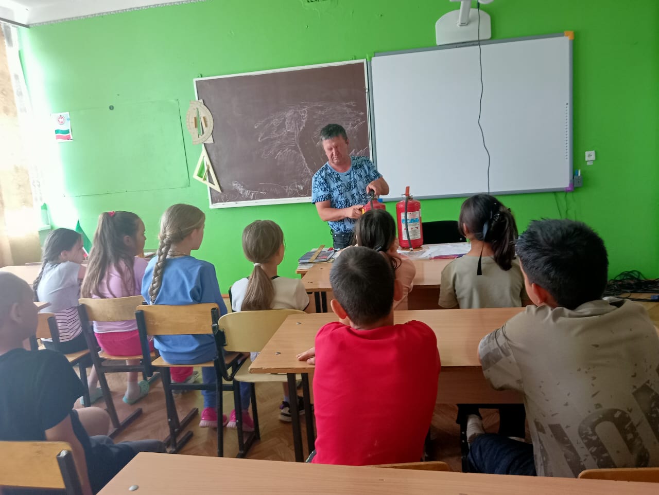 Провели беседу на тему "Огонь - враг, огонь-друг" и конкурс рисунков по этой теме. Изучение правил в ЧС при пожаре по руководством воспитателя.