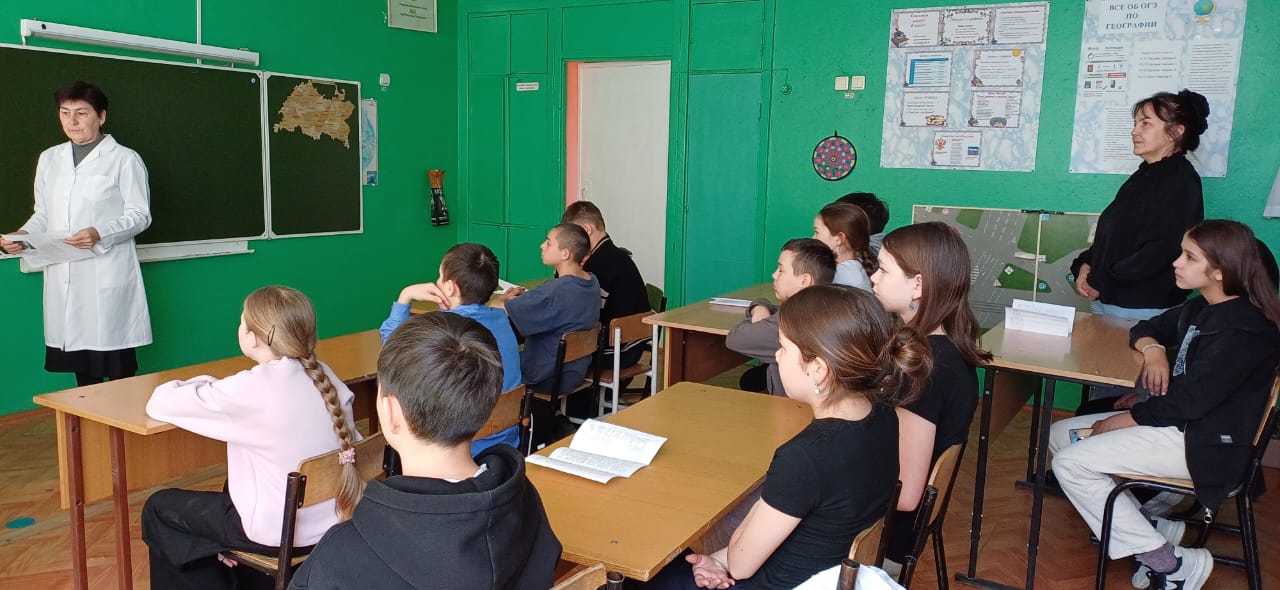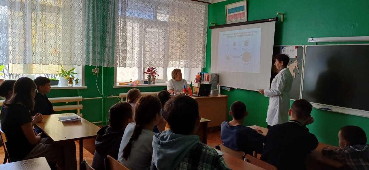 По актуальной проблеме: защите от клещей проинструктировала фельдшер ФАП Юсупова Хафиза. Было немного в развлекательном формате, чтобы учащимся было легче воспринимать полезную информацию.
