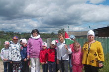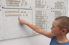 Искә алу көне. Бөек Ватан сугышы илебезгә зур югалтулар алып килгән. Яңадан андый кайгыларны күрергә язмасын! Лагерьда ял итүче укучлар сугыш башлаганга 75 ел тулуны искә алып һәйкәлгә чәчәкләр куйдылар. Шаехов Раиль үзенең бабасы белән горурлана.