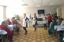 Чалпы мәктәбе активистлары 10 май көнне Чалпы "Өмет" социаль бүлегендә ял итүче район ветераннарын Җиңү бәйрәме белән котлап чыгыш ясадылар. Ветераннар биюче кызларны кайнар алкышладылар.