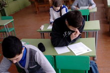 Юнармейцы школы решают Всероссиийский правовой тест.