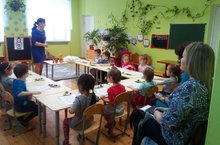 Сегодня на базе МБДОУ №18 г.Азнакаево, "Улыбка", прошел 1 тур муниципального этапа Республиканского конкурса "Воспитатель года - 2018". Ихсанова Гульнара Рафисовна представляла детский сад №14 "Родничок" и показала открытое занятие с детьми среднего возраста.