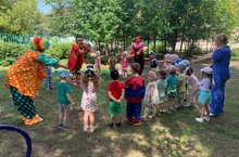 Бүген бездә клоуннар Бим, Бом һәм Каляк-Маляк балалар белән бергә җырлар җырладылар, күңелле уеннар, эстафеталар уйнадылар һәм балаларга яхшы кәеф бүләк иттеләр. Күңел ачу халыкара клоуннар атналыгына багышланды.