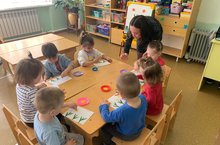 Кечкенә яшьтәге икенче төркемдә бармак белән рәсем ясау.