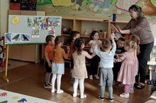 Балалар бакчасында тәрбияләнүчеләр "Ветеранны Җиңү көне белән котлау" акциясендә катнаштылар. Балалар ветераннарга ныклы сәламәтлек, озын гомер теләделәр һәм Бөек Җиңү көне уңаеннан открыткалар тапшырдылар.