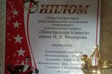 Дети подготовительной к школе группы под руководством музыкального руководителя Хазиахметовой С.Г. приняли участие в Открытом фестивале среди танцевальных коллективов Азнакаевского муниципального района "Танцевальная планета" имени И.Х.Манюрова