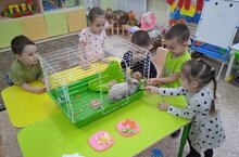 Дети второй младшей группы наблюдали за кроликом, отметили особенности внешнего вида, чем питается кролик. В ходе наблюдения воспитатель старалась формировать положительное отношение к кролику, желание заботиться о животных.