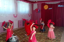 Девочки подготовительной группы исполняют танец "Пламя огня" на церемонии награждения участников конкурса детско-юношеского творчества по пожарной безопасности