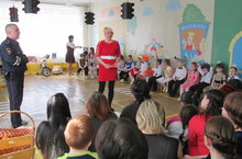 Дети старшей группы, а также родители воспитанников, вместе с инспекторами ОГИБДД повторили все правила дорожного движения.