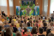 Балалар "Ни өчен кыш көне аю өнендә йоклый?" дип исемләнгән мавыктыргыч театр карадылар."