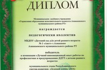 Наш детский сад стал победителем в номинации "Лучший инновационный опыт работы по профилактике и предупреждению ДДТТ с детьми раннего возраста" в муниципальном этапе Республиканского конкурса "Зеленый огонек-2016"