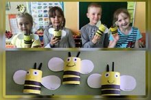На улице опять дождь и пчелки залетели к нашим цветочкам в группу.