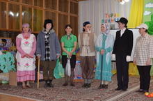 Безнен балалар бакчасында Республикабызда балаларны ике дэулэт теленэ эйрэту буенча яна алымнар куллану турындагы карарны, hәм белем биру өлкәсендә 5 еллык усеш комплекслы дэулэт программасын тормышка ашыру буенча эзлекле эш алып барыла. Бу программаны тормыщка ашыруда яна талэплэр буенча белем биру процессында тэп катнашучылар булып, балалар, тэрбиячелэр хэм эти-энилэр тора. Бердэм проектларны тормышка ашыруда; шэгыльлэр, тематик бэйрэмнэрдэ; экскурсиялэр, кургэзмэлэр, конкурслар оештыруда эти-энилэр актив катнашучылар. 26.04. көнне бакчабызда Татар теле айлыгының әти-әниләр, балалар, бакча һәм район китапханәсе хезмәткәрләре катнашында “Татарның бер баласы” дигән йомгаклау кичәсе булып узды. Бәйрәм бөек шагыйребез Г.Тукайга һәм Татарстанның куренекле драматургы Туфан Минннуллинга багышланган иде. Кичәнең берече өлешендэ бөек шагыйребезне зурлап, балалар шигырьләр сөйләделәр, җырлар Бәйрәмнең икенче өлешендэ татар теле тәрбиячеләре Солтанова Илсинә Җәлил кызы, Катеева Гөлназ Рафаил кызы, мультимедия технологиясе кулланып, Туфан Миңнуллинның иҗади тормышы белән таныштырдылар. Балалар белән “Авыл эте Акбай” әсәрен оста итеп сәхнәләштерделәр. Балаларны бигрәк тә шатландырганы әниләре уйнаган “Әниләр һәм бәбиләр” әсәреннән тамаша карау булды .Кичәнең кульминацион ноктасы булып, бакча хезмәткәрләре сәхнәләштергән “Әлдермештән-Әлмәндәр” спектакленнән өзек карау булды.Ә инде ял минутларында балаларның шаян биюләре,шәһәребез Азнакай турында матур җырлары,шигырьләре кичәне тагын да җанландырды һәм бизәде.