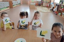 Уртанчылар төркемендә өстәмә белем бирү эшчәнлегендә балалар, язның беренче чәчәге - мимоза тәлгәше ясадылар.