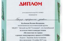 Наша воспитанница Калбанова Полина стала призером серебряного уровня по итогам очного конкурса чтецов "Путешествие по стране" в рамках международного проекта "СОМИК". Руководитель Хасанова Луиза Асламовна