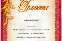 Коллектив нашего детского сада стал победителем конкурса "Снеговик-2018"