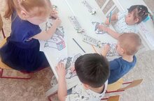 Сегодня воспитанники средней группы говорили о птицах, разукрашивали раскраски.