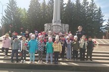 5 мая воспитанники старшей группы отправились к памятнику воинам, погибшим во время Великой Отечественной войны. Возле мемориала провели беседу о героизме и подвиге советских солдат, спасших нашу страну от захватчиков, в честь которых поставлен памятник.