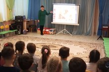 В детском саду проходят занятия, в рамках месячника противопожарной безопасности. Занятие в младшей группе.