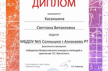 Учитель-логопед Хасаншина Свелана Витаиловна - победитель Всероссийского конкурса стипендий и грантов им.Л.С. Выготского 15.06.2017