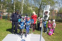 6 мая 2016 года состоялось учебное занятие по правилам дорожного движения с детьми подготовительной группы с участием капитана полиции, инспектора по пропаганде Ильдара Исмагиловича Исхакова, начальника Азнакаевского филиала «Дирекции финансирования программ БДД РТ Альмиры Рифовны Сагдатуллины. На мероприятии в игровой форме закреплялись знания о ПДД. Были организованы небольшие конкурсы.