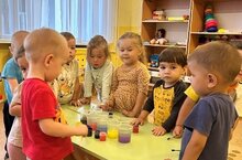 Идет неделя "Мир экспериментов". Дети младших групп (воспитатель Нурмыева М.М.) проводят опыты с водой.