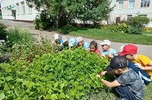 Дошколята старших групп в течение всего лето ухаживали за исследовательско - экспериментальным участком на территории сада: поливали, рыхлили, убирали сорняков. они наблюдали как растут: ячмень, гречиха, пшеница, помидоры, огурцы, картофель, кабачки, фасоль, горох и зелень.