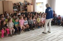 Бүген безнең бакчада өлкән мәктәпкәчә яшьтәге балалар өчен (69 бала) тормыш эшчәнлеге нигезләре буенча балалар белән куркынычсызлык буенча "Мин - яхшы җәяүле!" дип исемләнгән Бөтенроссия ачык дәресе узды: . Бездә кунакта Әлмәт шәһәренең "БДД" ДБУнең Азнакай районындагы профилактика бүлеге башлыгы А.Р. Сәгъдәтуллина булып китте. Ул балалар белән юл хәрәкәте турында әңгәмә үткәрде, мәктәпкәчә яшьтәге балалар юл хәрәкәте кагыйдәләре турында фильм карадылар.