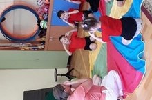 Тәрбиячеләр Мифтахова А.В. һәм Фахуртдинова Л.А. II иң кечкенәләр төркемендә "Хәрәкәттә бәрәкәт" проекты буенча балалар белән сәламәтләндерү күнекмәрен ясыйлар.