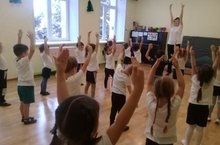 10нчы төркем балалары (җитәкчеләре - Шакирова Ф.С.) кызыклы уен үткәрер алдыннан разминка ясыйлар. Төрле уеннарда катнашып коллективта аралашу чараларына өйрәнәләр.