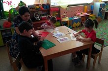 "Үзенчәлекле бала" төркемендә әвәләу шөгыле. Бу төркемдә балалар тырышып - тырышып әвәләргә өйрәнәләр. Аларның һәрбер тырышлыгы тәрбиячеләргә куаныч китерә.