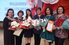 День работников культуры. 07.04.2016 7 апреля 2016 года прошло торжественное мероприятие посвященное Дню работника культуры и открытия Года Российского кино. На празднике педагоги нашей школы были награждены Почетными грамотами Главы Азнакаевского муниципального района , управления культуры и Благодарственными письмами Управления культуры и ценными подарками . Почетной грамотой Администрации города – Сергеева Светлана Ивановна. Почетной грамотой управления культуры – Газизова Лилия Фаилевна Шакирзянова Ильгиза Илдусовна Благодарственными письмами управления культуры , получившие Гран При : 1. Тимирова Лилия Алмасовна 2. Ахметгалиева Фирдавес Миргасимовна 3. Шайхуллина Эльвира Ильгизовна 4. Шарифуллина Наиля Сафуановна 5. Зарифуллина Милуша Насиховна 6. Закирова Лилия Рашитовна. Выступление воспитанников нашей школы вокальных ансамблей «Фантазия» (руководитель Шайхуллина Э.И.), «Юлдаш» (преподаватель Ахметгалиева Ф.М.), «Бэхет» (руководитель Шарифуллина Н.С.), хореографических коллективов «Балачак» (руководитель Зарифуллина М.Н.), «Лилия» (руководитель Закирова Л.Р.), фольклорного ансамбля «Хей егетлэр» (руководитель Махиянова А.М.) и сотрудников Тимировой Л.А., Динмухаметова И.И. было украшением мероприятия. В фойе РГДК было организовано выставка изделий декоротивно- прикладного искусства с участием Азнакаевского школа искусств и других учреждений управления культуры.