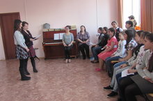 Мастер класс с хоровым коллективом "Элегия". 17.03.2016 Методическая помощь хоровому коллективу «Элегия» Жизнь музыкальных коллективов Азнакаевской школы искусств очень интенсивна, наполнена светлыми планами, разнообразна. 17 марта 2016 года для оказания методической помощи , хоровой коллектив «Элегия» (руководитель Шафигуллина Р.Н.) посетила преподаватель Альметьевского музыкального колледжа Калита Инна Анатольевна. Во время мастер –класса дети с удовольствием демонстрировали свои знания и умения. Прислушивались к пожеланиям Инны Анатольевны, делились своими впечатлениями, трактовкой музыкальным произведением. В атмосфере творчества пролетели целых три урока. Наш коллектив «Элегия» приглашен и готовиться к Региональному конкурсу «Юный исполнитель» в номинации «Хоровое пение» по Юго-востоку РТ., который состоится 20 апреля в Альметьевском музыкальном колледже. Успехов и побед вам, «Элегия».