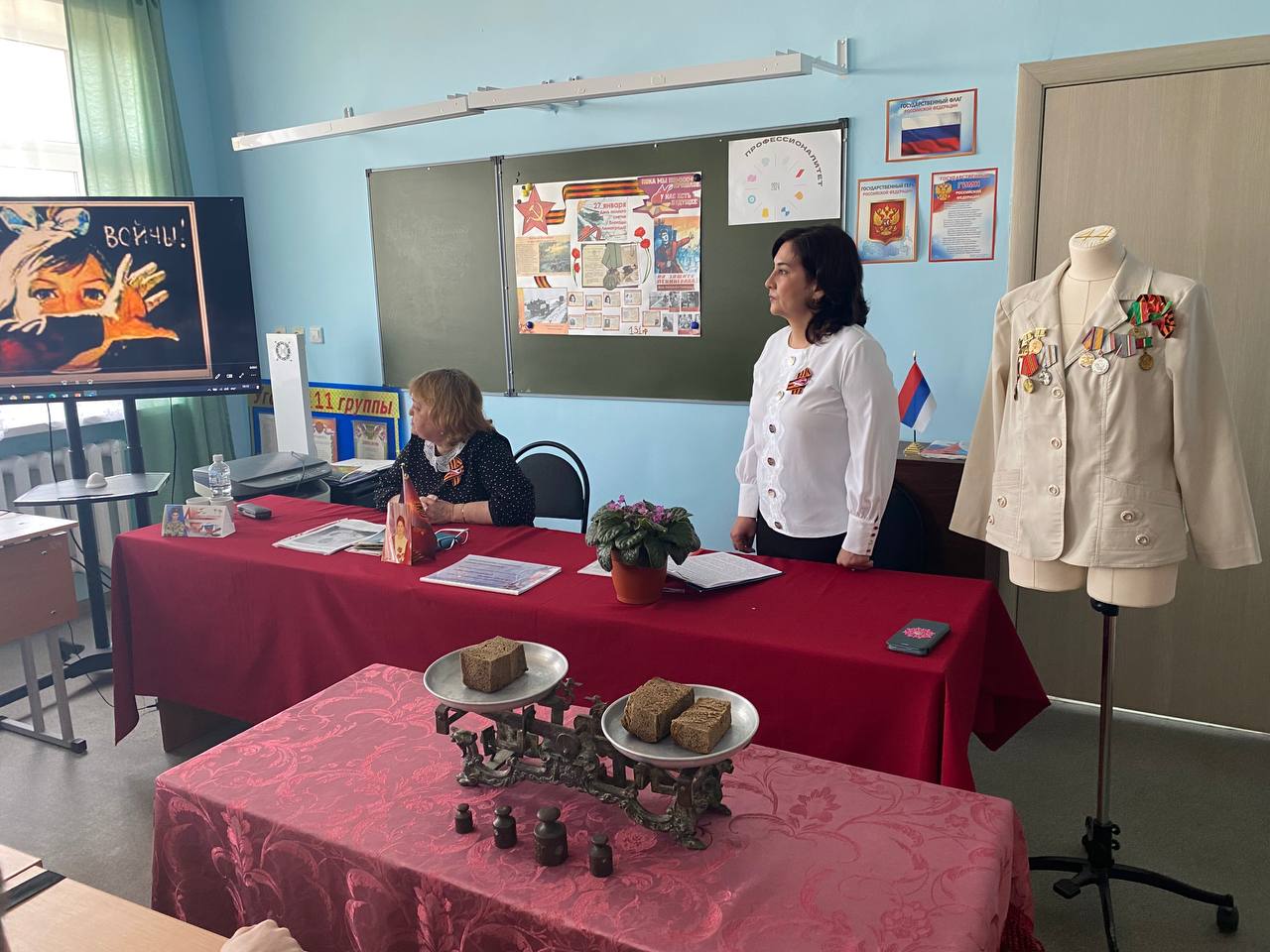 Сегодня на открытом уроке в группе ЭРСО-24 на тему "В огне войны сгорело детство" преподаватель истории Ахметова Г. А. рассказала о сложной судьбе блокадницы Усмановой Римы Хатыповны и показала, что пережили дети блокадного Ленинграда во время Великой Отечественной войны. На встрече дочь Венера Гильманова поделилась воспоминаниями.