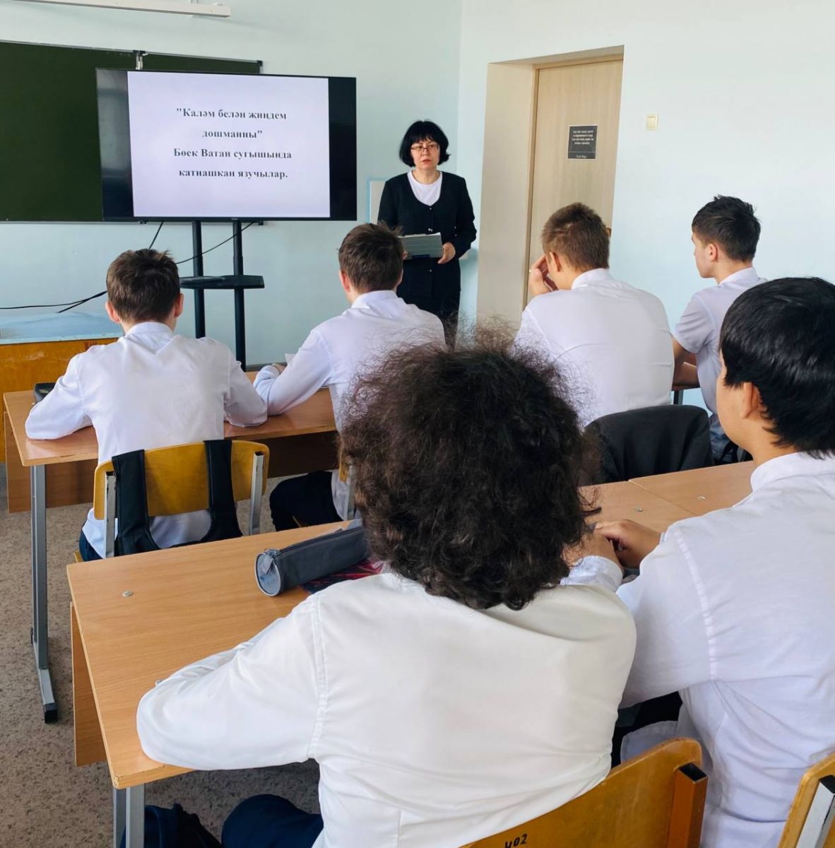 Гуманитар дисциплиналар декадасы кысаларында Туган тел hәм әдәбият укытучысы Гөльнур Ильнуровна МРА 24нче төркем студентлары белән "Каләм белән җиндек дошманны" темасына ачык дәрес уткәрде.
