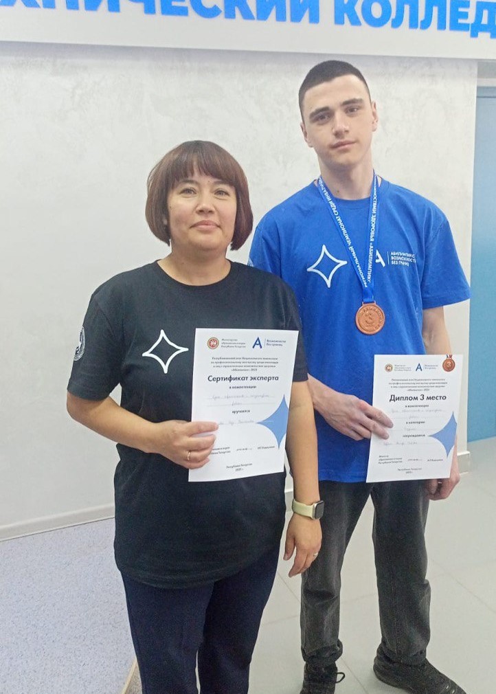 Данилов Динар обучающийся группы 531 под руководством мастера производственного обучения Мансуровой З.Э. участвовал в региональном Чемпионате профессионального мастерства "Абилимпикс" и занял 1 место!????