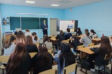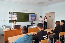 С 9 классами 6 школы беседу провели амбассадор Нияз и преподаватель Резеда Тагировна -